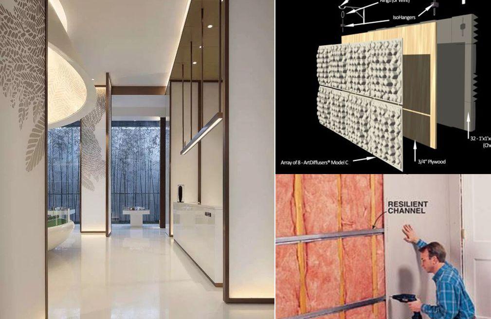 间墙上,所有板与板间,地台及吊顶接口之间都应该加上连续性的填缝胶。所有电线管道、线槽等等通过间墙及电力插座边缘,都应该加上隔声填缝胶以及挤满在所有形成之空隙里。