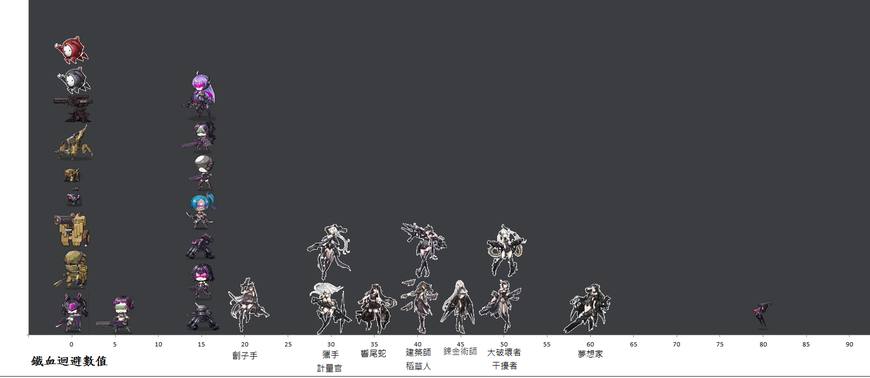 接著看一下后期关卡(主线第七、第八章或大型活动隐藏迷宫等)铁血的迴避值分佈