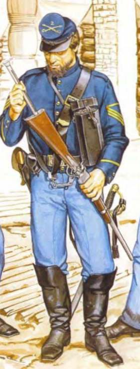 这是一款1867年推出的后膛步枪。他原本是一种骑枪,尤其在南北战争时期,步兵们大多还在用前装枪,而骑兵前装不便,所以给他他们开发了一种后端可以滚动开闭锁的后膛卡宾枪,这样装填方便多了。