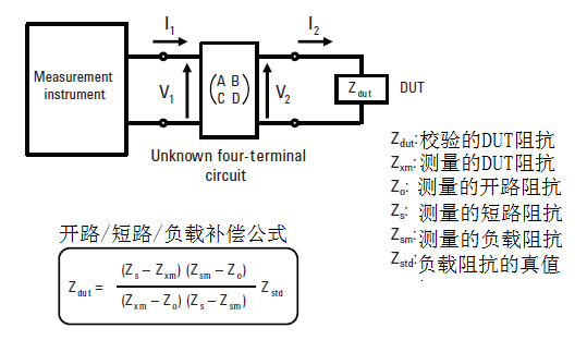 在选择补偿器件时一种比较实际的做法是先用一个标准夹具,在进行完开路和短路补偿之后再去测量准备当补偿负载用的器件,用这种方法来确定负载补偿器件的阻抗值,然后可以把这个阻抗值输入给仪表作为补偿测量标准件的值。