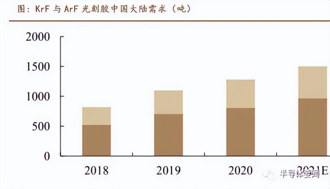 整体上,KrF 与 ArFi 基本覆盖主流芯片制程和应用需求,且在单芯片制作过程中用量相比更多,因而成为了光刻胶市场上需求最大的两类。