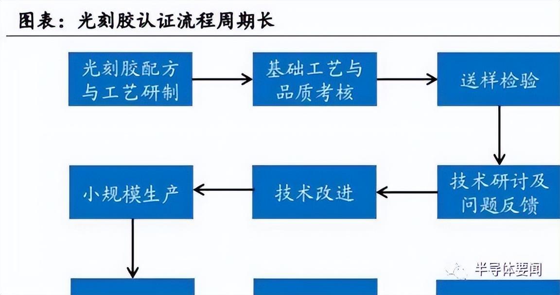 光刻胶具有高客户壁垒,由于芯片制造所需光刻过程复杂多样,不同光刻过程、同一光刻过程的不同厂家对光刻胶的需求也有差异,因此光刻胶生产商需要调整光刻胶配方以满足差异化需求。而光刻胶达到下游客户要求的技术指标后,还需要进行较长时间验证测试(1-3 年)。