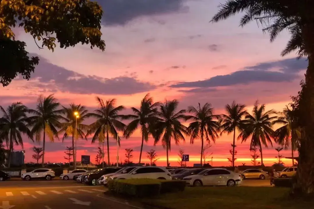 尤其是雨后,前往上图的世纪公园 ,一定就能见到这瑰丽的晚霞 ,映衬着椰树的剪影,混着雨后清新的空气。