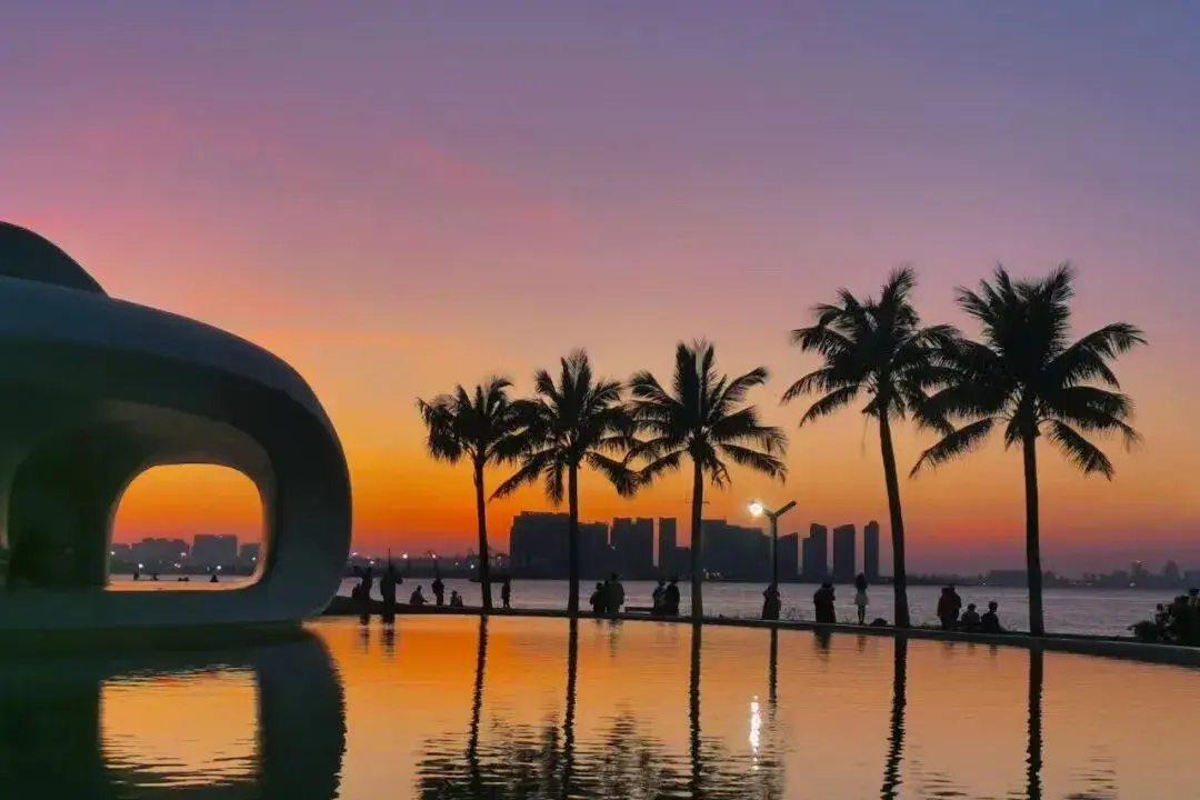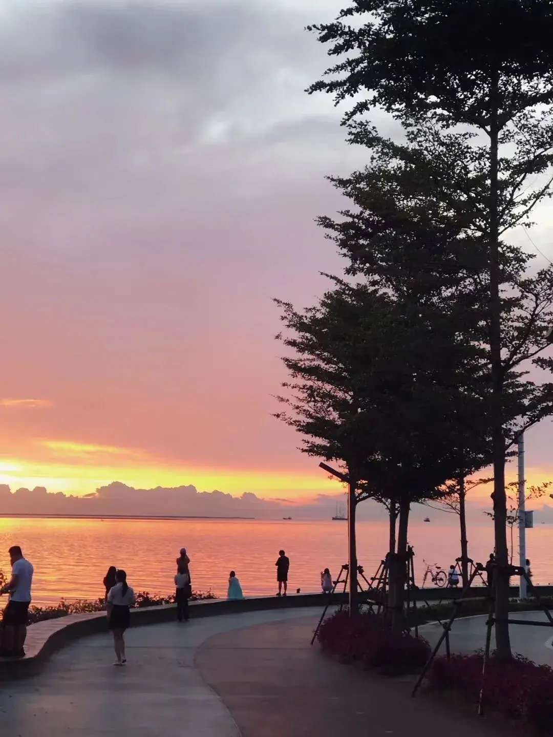 而这种媲美夏威夷的落日海景 ,在海口由西至东,光海岸线大小公园就有不下十处。