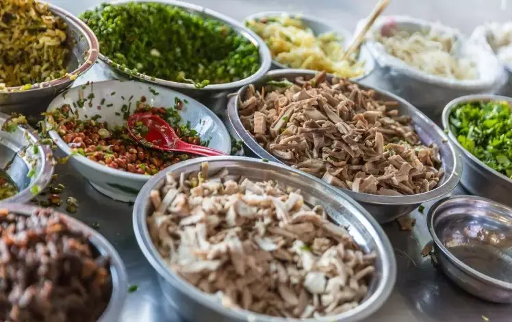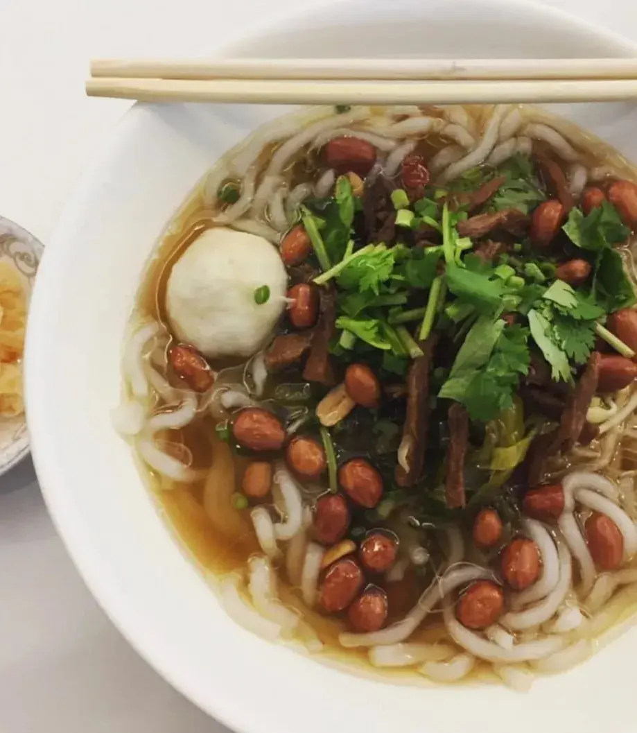 海南粉的佐料非常多 ,不用担心不好吃,一口粉带进嘴的还有牛肉、花生、酸笋、榨菜 ……嚼吧嚼吧有滋有味。