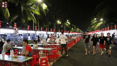 海口的夜市汇集了岛内各类小吃,从清补凉、糟粕醋、水果辣椒盐,到海南粉、各种海鲜、炸串烧烤 ,甚至是烤饼 。