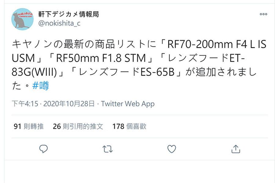 之前我们曾报道过,佳能在2020至2021年内还将会发布多达16支RF卡口镜头,而眼看2020年还有几个月就将结束,最新传闻佳能会在今年内率先发布两支新镜头。国外网站Nokishita也在其社交平台帐户发布了两支新镜的相关消息,而且会是很多人期待的焦距。