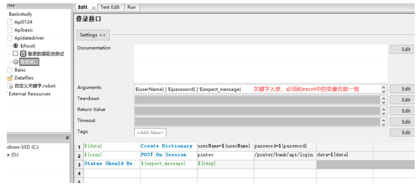 5. 创建登录接口关键字