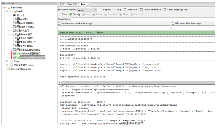 先实现登录接口的用例,再实现查询余额接口的测试,然后两个一起执行即可