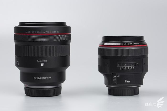 佳能RF85mm F1.2L USM DS和 EF 85mm f/1.2L II USM大小对比