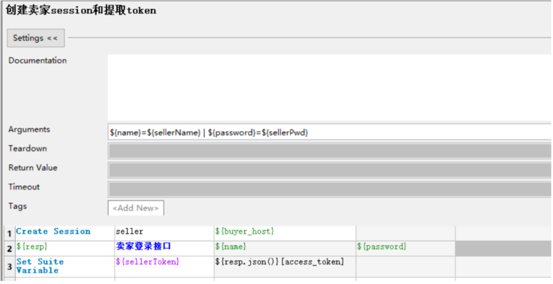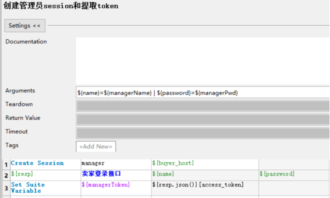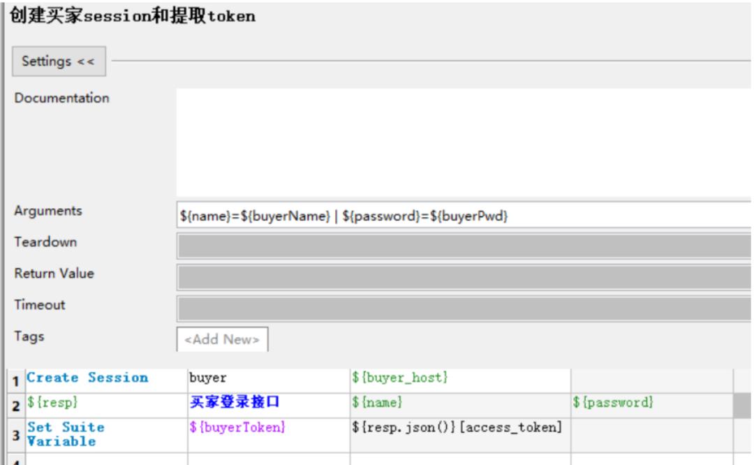 创建买家session和提取token 关键字