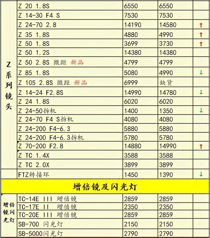 尼康方面,部分机型依旧处于缺货状态,Z系列机身大幅度降低,Z系列的大三元微涨并缺货,新发布的Zfc,官方称28mmF2.8特别版套机注定会缺货,细品。