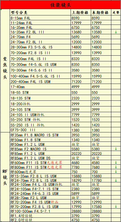 佳能降价了,RF大三元离你有多远?一周相机行情