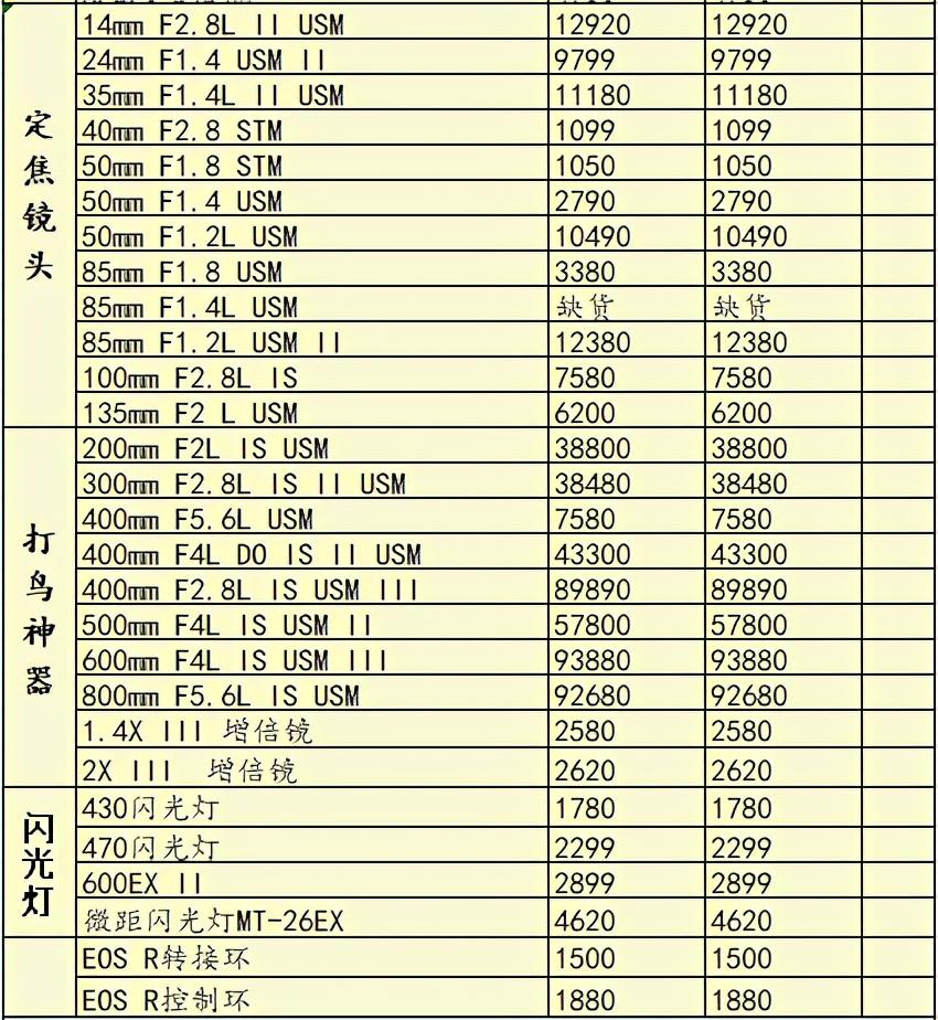 对比一下佳能EF卡口镜头的价格,是不是瞬间很羡慕单反玩家了?价格便宜一半!在二手市场上,更是不到1/3的价格。所以今年二手交易很活跃,一个RF镜头的价格,可以买一套全画幅单反,这笔账用户还是算得很清楚的。