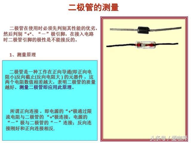 若无法识别极性,可通过测量推断:红表笔接正极、黑表笔接负极时正向导通